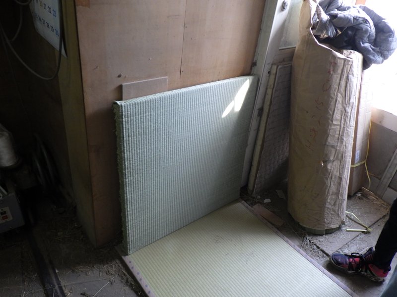 昨年の5月に畳店に見てもらった所、「7島イ」の需要も少なく今年の分は既に消費されたとの事。やっと先日「7島イ」が届きましたと連絡が有り表替えです。