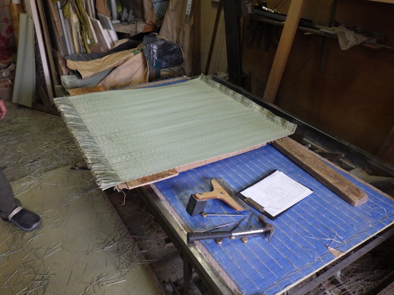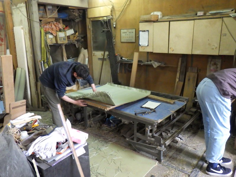 畳屋さんの作業場へ所員とお邪魔して作業の様子を見学させていただきました。中々見る機会のない作業です。