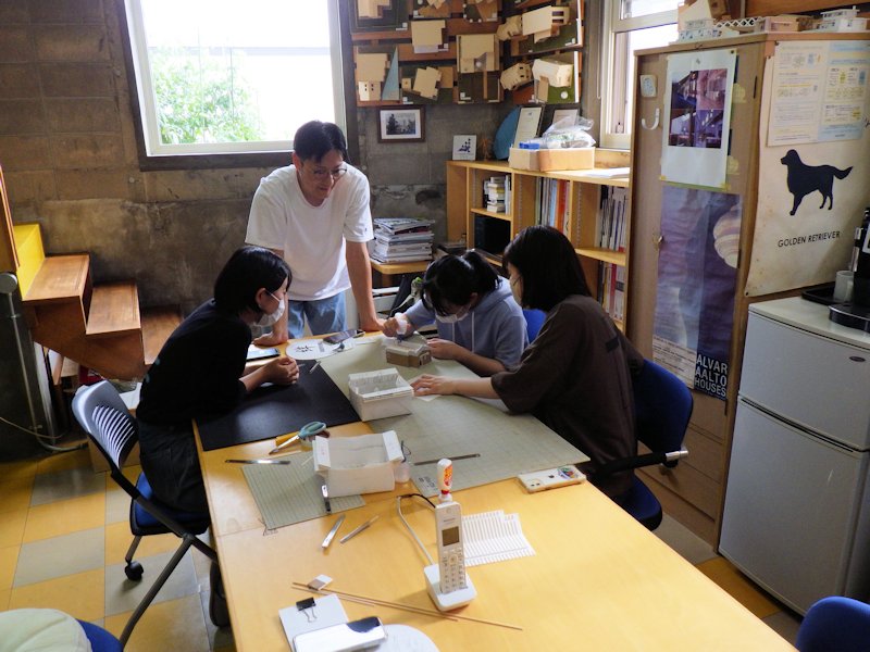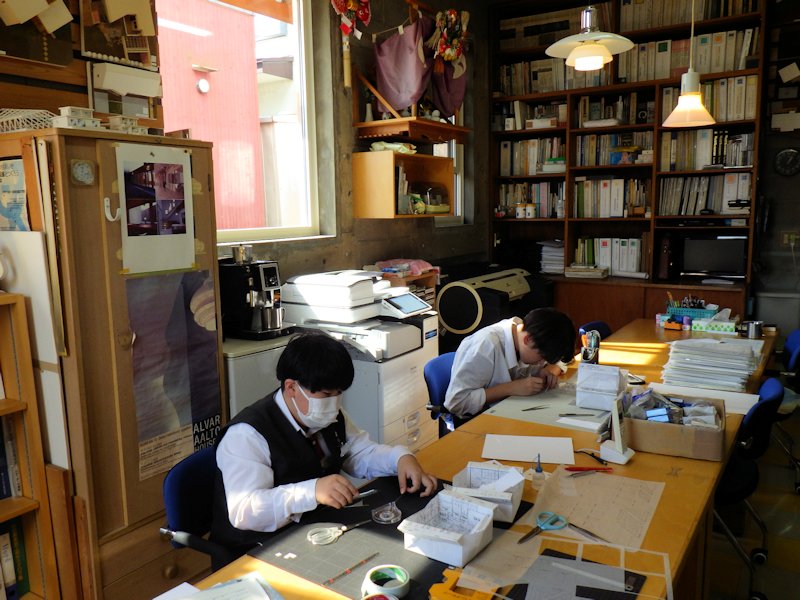 以前、設計させていた「アドリブ コート」の息子さん。設計開始から完成の頃は小学生、建築に興味を持ち中学生と高校生の時も設計事務所の仕事を知りたいと自ら研修に来ていました。建築の大学に進み3度目の自主研修です。