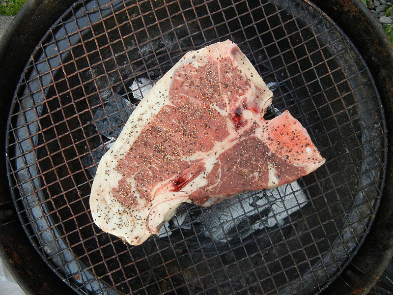 天気の良い休日に冷凍庫にしまっていた「Tボーーーーーンステーーーーーキ」が有るのを思い出し一人で炭火焼・・・・。