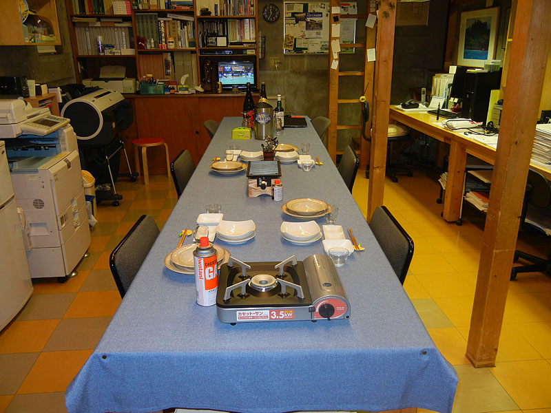 恒例となった「ご近所さん事務所」を招待しての飲めや喰えやの宴の開催。