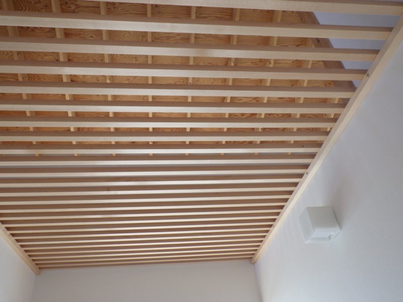 左は教えながら一緒に模型を作った所員の森です。 - 2021-09-20 陸別のKIRIZUMA 開放されたていた和室天井にはルーバーを設置しました。