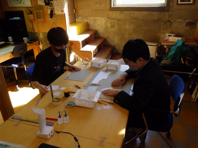 毎年9月に釧路工業高等学校建築科の2年生がやって来ます。今年は小林君。3日間と短い期間で建築模型習作(反住器)に取り組み完成。ご苦労様でした。