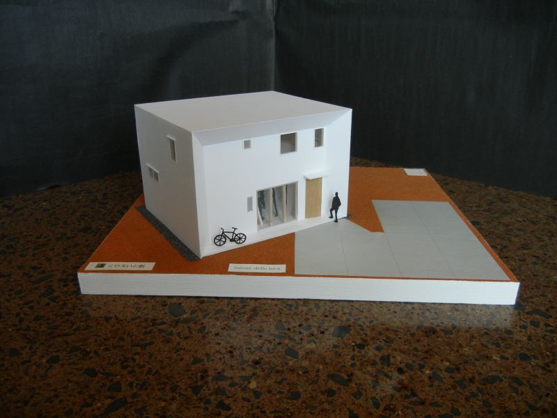設計主旨:市内の大きな公園に面した敷地に計画した家族5人の住宅である。クライアントである御主人は市内の美容室に勤める美容師でお店を任されている。予算から導かれたヴォリュームは30坪、最初のプレゼンは一部2階の計画だったが、打合せの過程でコストパフォーマンスが優位な1階15坪2階15坪の総2階の計画とした。独立して御自分の美容室を持つ事が目標であるクライアントの為、1階のLDKやBEDROOMは大きな空間の中で「場所」を確保するのみとし将来的には店舗にも出来る計画とした、その為基本的な生活は全て2階で出来る様にしている。つまり5人家族15坪のミニマムハウスである。北側に広がる公園を望む為前面道路側にも開口部を設けた、2階内部空間はDKとプライベート空間で構成し南全面に渡したバルコニーで回遊出来る。小さな空間に楽しい家族が集う住宅である。