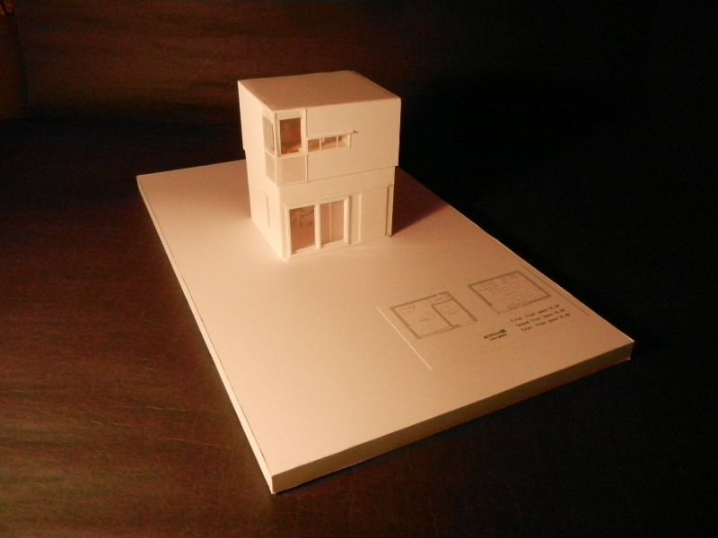 設計主旨:築40年近い老朽化した住宅を減築し多目的倉庫にリノベーションンする計画である。今後増えるケースとして考えれれる「家づくり」古い家を減築して再生する実例として考えた。1F5坪、2F5坪計10坪の建築は住宅としてのプランも検討している