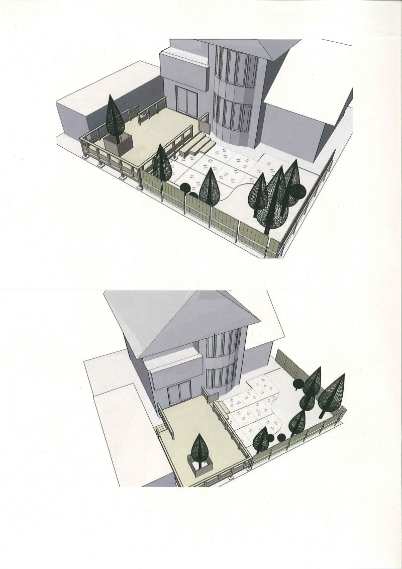 設計主旨:暫らく手入れされていなかった庭を再生するプロジェクトである。祖父が作った庭には広葉樹、針葉樹、低木、花、景観オブジェクト等々が所狭しと配置されていた。剪定と伐採伐根で20本近い樹木を高木、低木合わせて6本程度とし広いウッドテラスとコンクリートテラスを配しシンプルな庭に再生する。その庭は愛犬が走り回るドッグランにもなる。